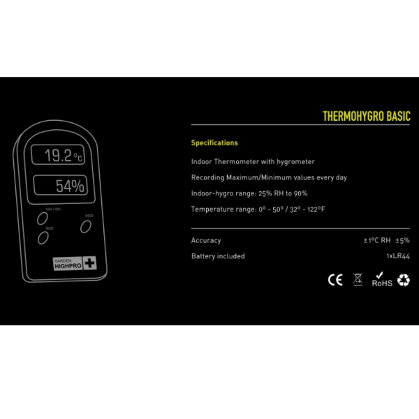 Precisión: ±1 °C. Humedad relativa: ±5 %.
